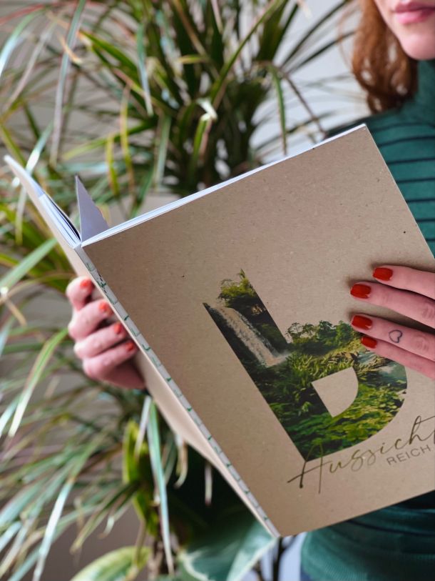Der Katalog zum AussichtsReich in Form einer edlen Broschüre hilft dabei, den Weg durch den Bauelemente-Dschungel zu finden. Er teilt die Ausstellung in acht Bereiche zu diesem Thema und liefert Informationen und Fakten zu den gezeigten Produkten. Ein Lageplan und die passenden Icons führen den Kunden zum Beispiel durch das Hochland, den Regenwald oder die geheimnisvolle Lagune. Der Katalog ist mit besonderen Details ausgestattet: Dazu zählen die offene Fadenbindung ebenso wie das passend zum Thema verwendete Naturpapier. Logo-Blindprägung und Relief-Lack auf dem Titel verleihen der Broschüre die Hochwertigkeit und Qualität, die sich auch in den beschriebenen Produkten widerspiegelt.