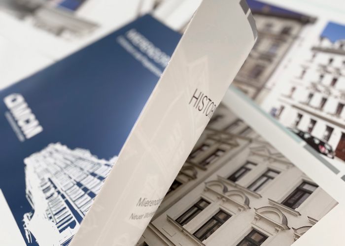Die Referenzprospekte "Einblicke in die Projektentwicklung" zeigen ausgewählte Denkmalsanierungen sowie Neubauprojekte. Außenaufnahmen, edle Interieuraufnahmen und auch Vorher-Nachher-Ansichten übermitteln eindrücklich Professionalität und Qualität bei der Umsetzung der Bauprojekte.